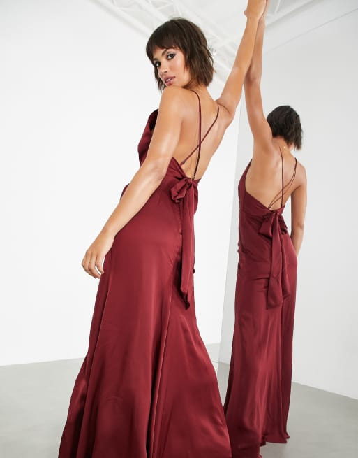 ASOS DESIGN Bridesmaid satin square neck maxi dress with side split in wine Very well made.