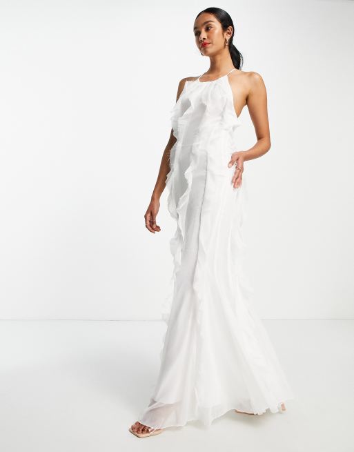 ASOS DESIGN halter maxi dress with bias ruffle detail in white Very well made.