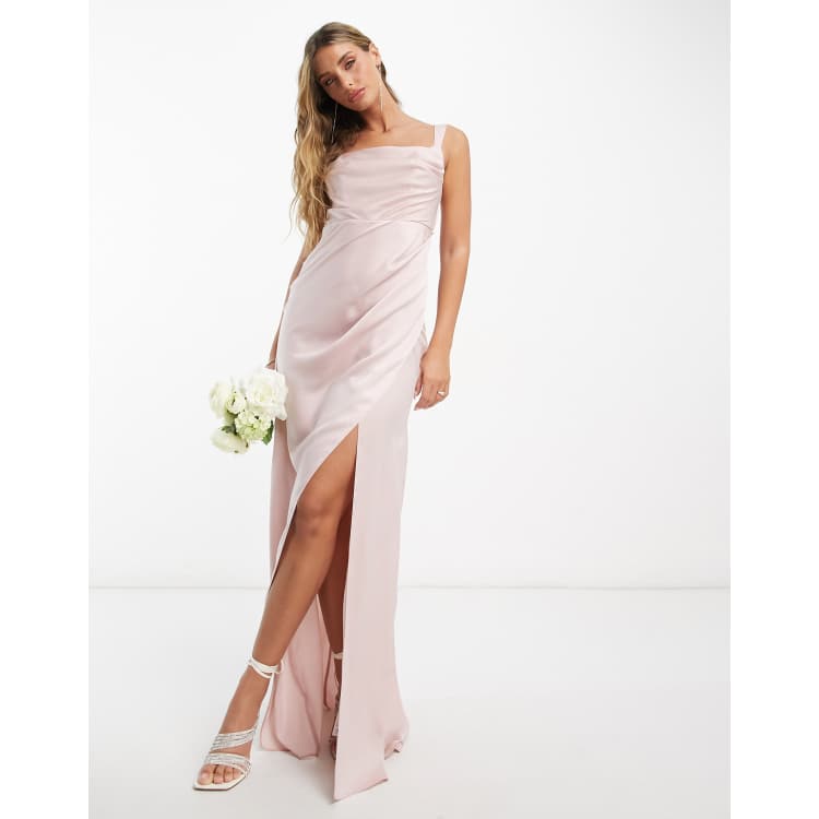 ASOS DESIGN Bridesmaid satin drape maxi dress with bow back in blush pink Very well made.