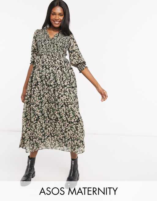 ASOS DESIGN Maternity midi smock dress with shirred cuffs in floral print Very well made.