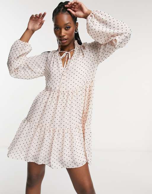 ASOS DESIGN shirred neck tiered mini smock dress in dobby ASOS Very well made.