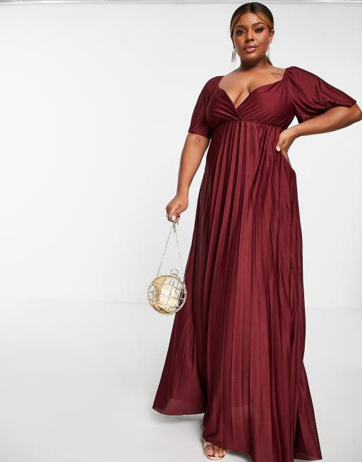 ASOS DESIGN Curve pleated twist back cap sleeve maxi dress in red Very well made.