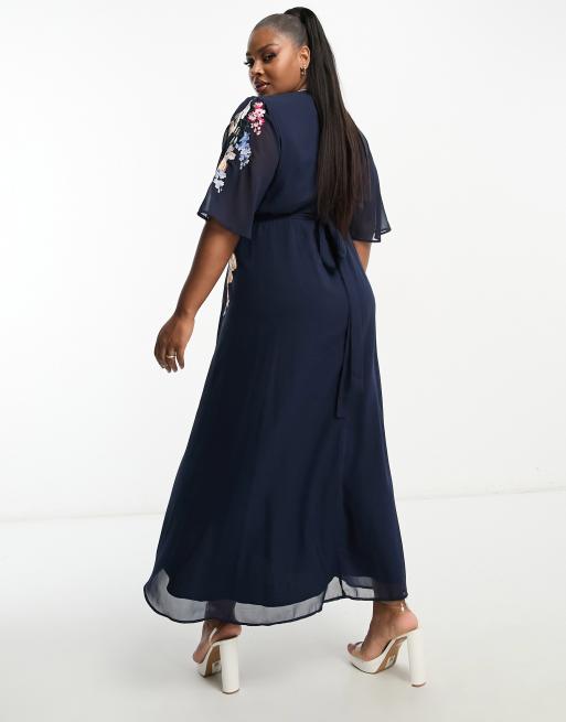 Hope Ivy Plus puff sleeve embroidered midi dress in navy Very well made.