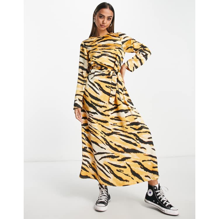 Pieces tie waist maxi dress in orange animal print Very well made.