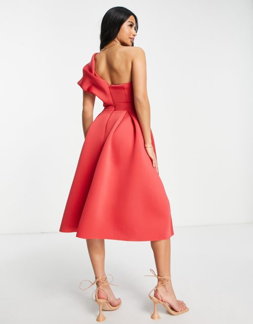 ASOS DESIGN Petite one shoulder ruffle prom dress in bright pink Very well made.