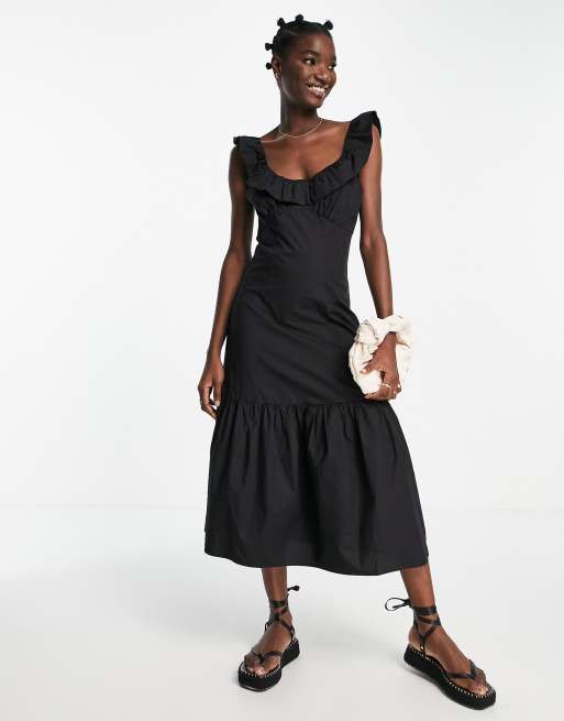 Whistles Jemma frill poplin midi dress in black ASOS Very well made.