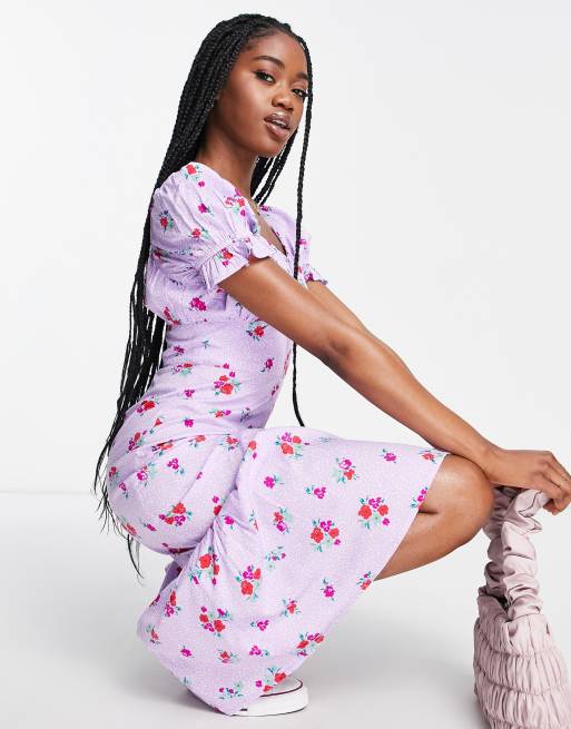 Influence midi tea dress in purple floral print ASOS Very well made.