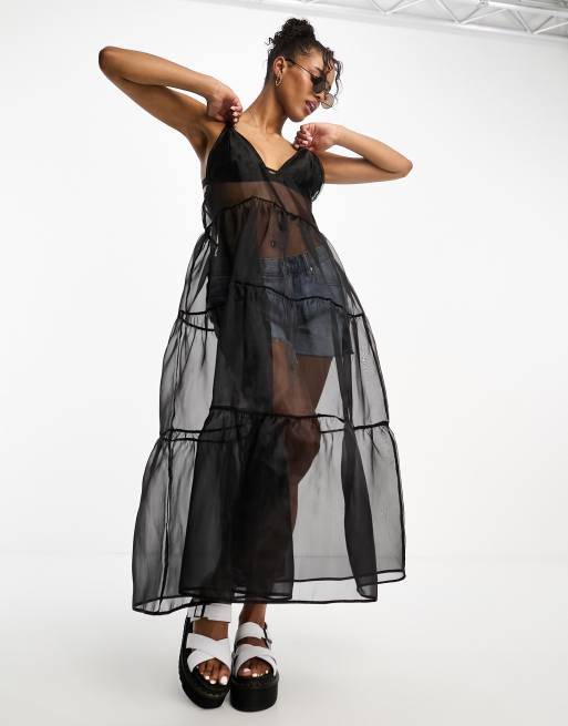ASOS DESIGN festival organza tiered midi dress in black ASOS Very well made.