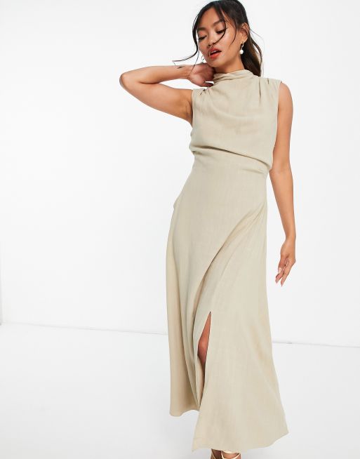 Lisa Neutral Champagne Satin Cowl Neck Slip Bridesmaid Dress Very well made.