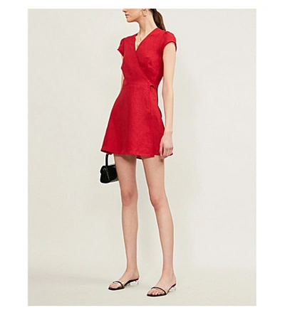 Reformation Red Linen Rodin Wrap Mini Dress Small Very well made.