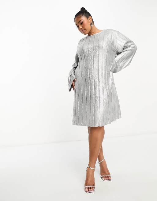 4th Reckless Plus exclusive metallic tie back mini jumper dress in silver Very well made.