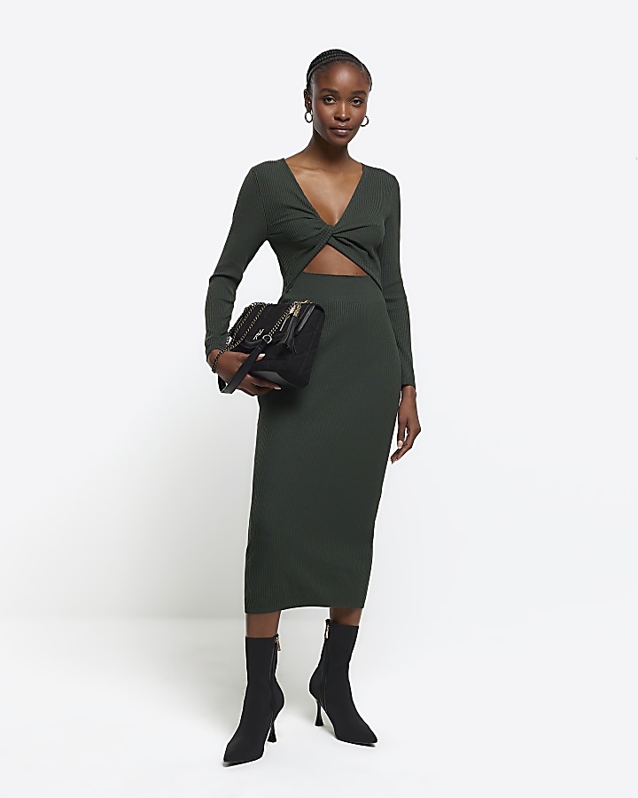 Khaki Grown On Sleeve Drape Midi Dress River Island Very well made.