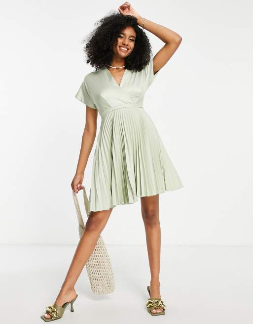 Closet London wrap front pleated midi skater dress in sage Very well made.