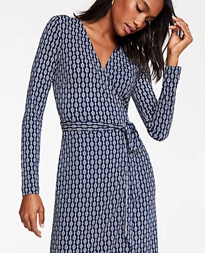 Ann Taylor Petite Chain Link Matte Jersey Wrap Dress In Navy Sky Very well made.