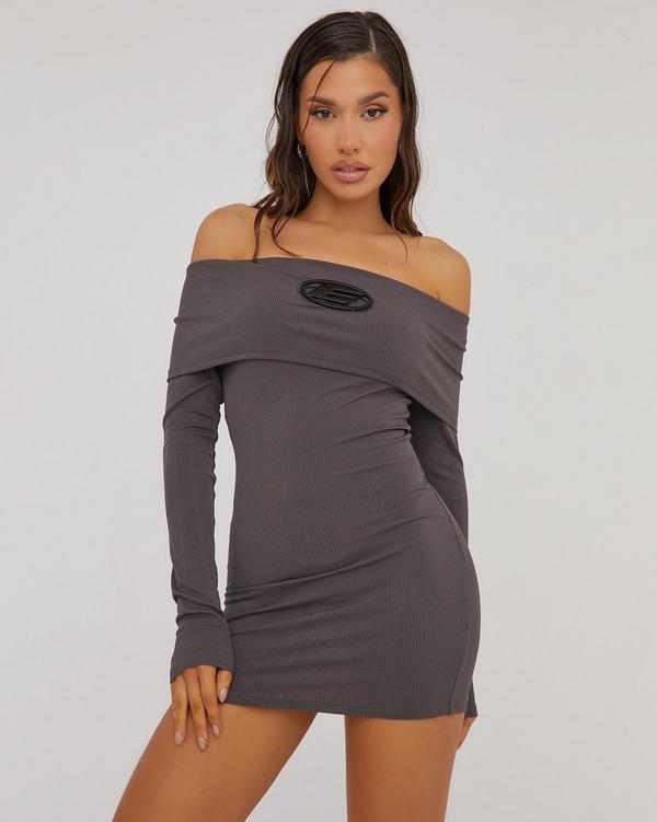 Bardot Fold Over Detail Long Sleeve E Logo Mini Bodycon Dress In Very well made.