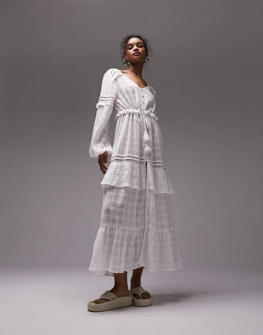 Topshop petite Broderie tiered mini beach dress in white atlaspt Very well made.