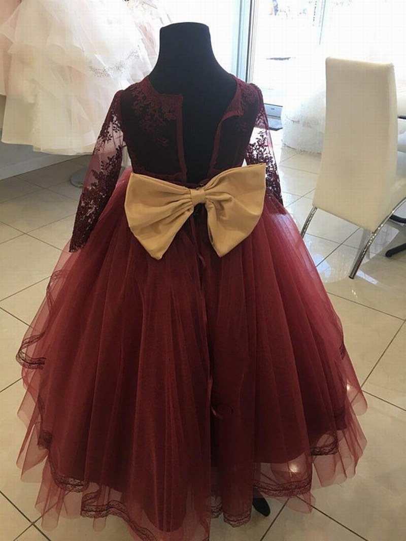 Burgundy And Gold Flower Girl Dress With A Back Bow Xk95 1 on Very well made.