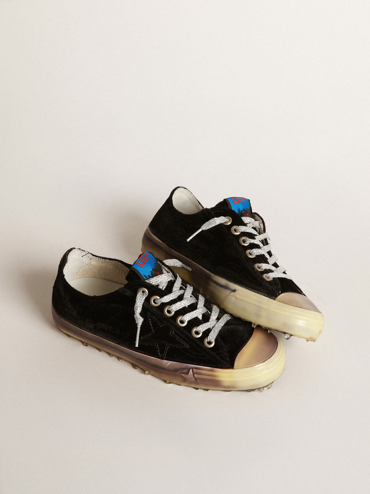 V Star LTD sneakers in black velvet with a black laminated leather star and heel tab Very well made.