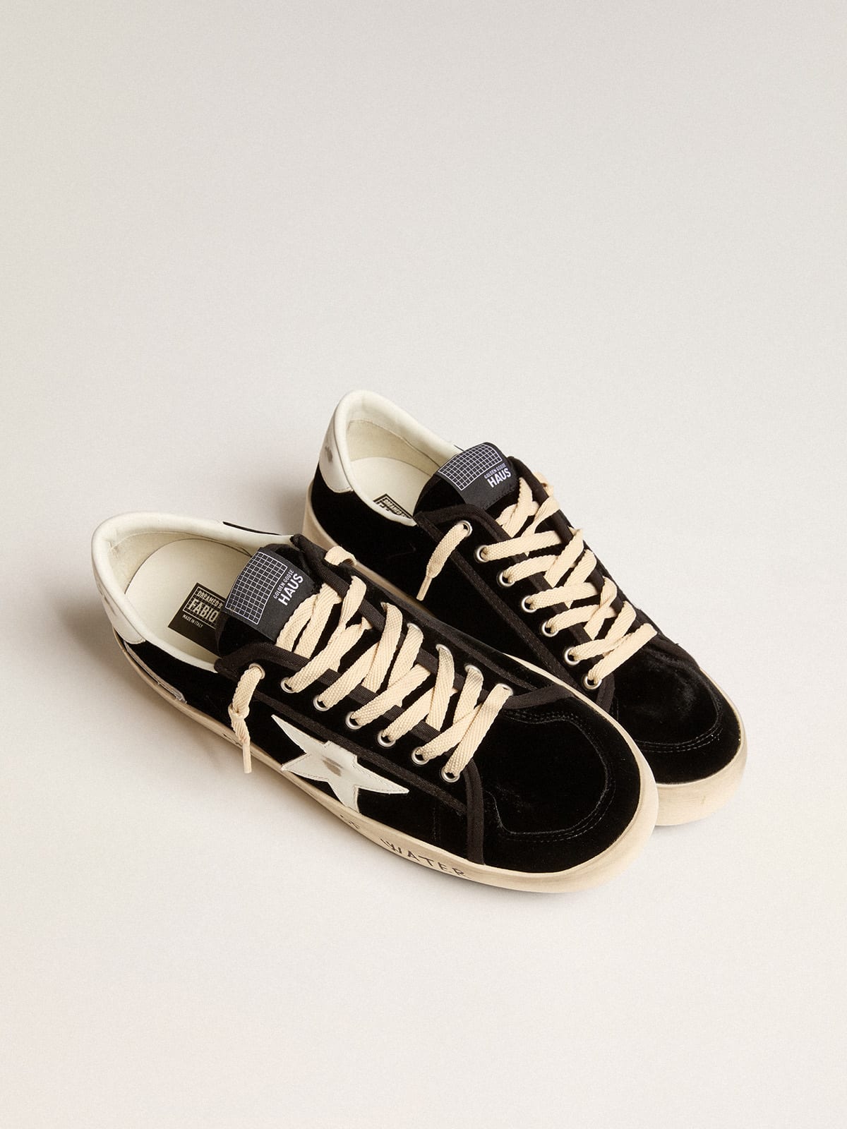 Golden Goose Black White Velvet And Leather Trim Superstar Lace Up Sneakers Size 41 Very well made.