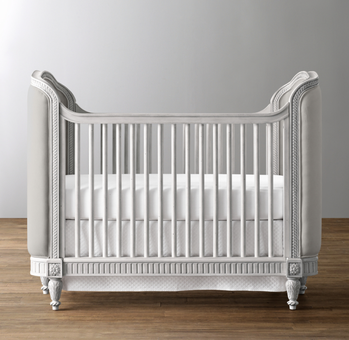 Belle Upholstered Crib Toddler Bed Kit Antique Grey RH Baby Very well made.