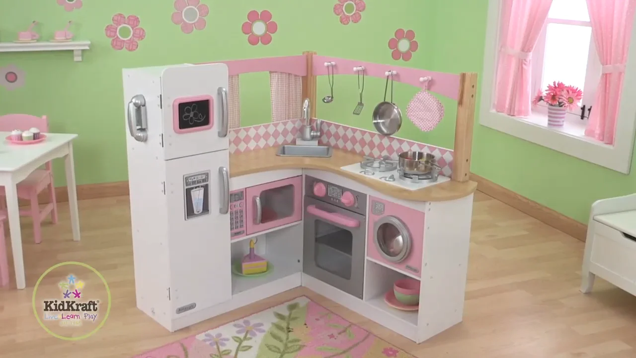 KidKraft Grand Gourmet Corner Kitchen Play Set Pink And White for Very well made.