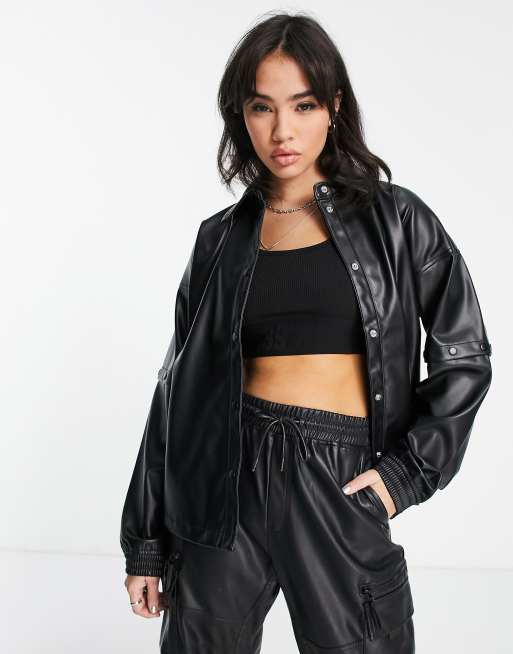 Women s Clothing Faux Leather SST Versatile Track Jacket Blue Very well made.