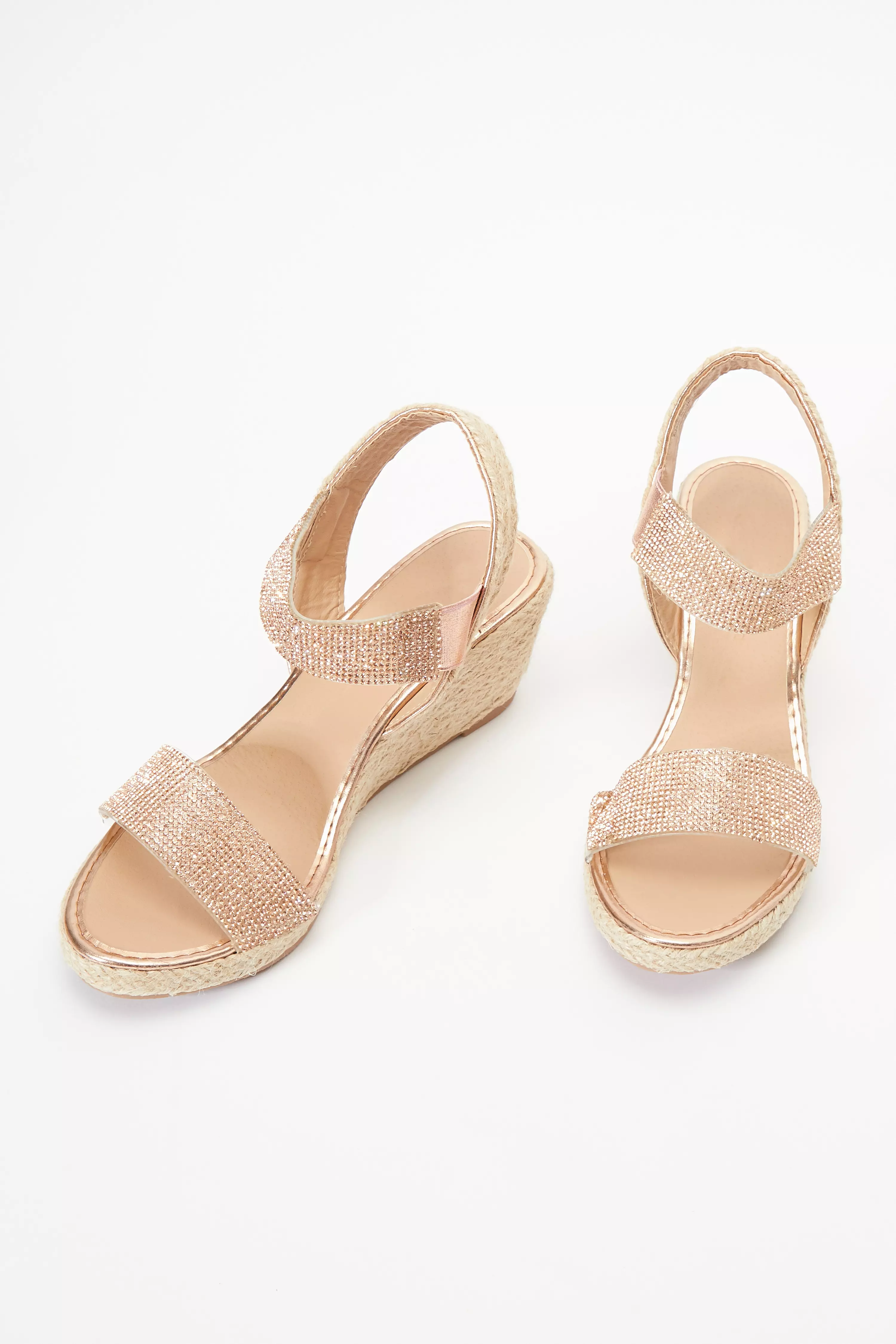 Rose Gold Diamante Low Wedge Sandals QUIZ Clothing Very well made.