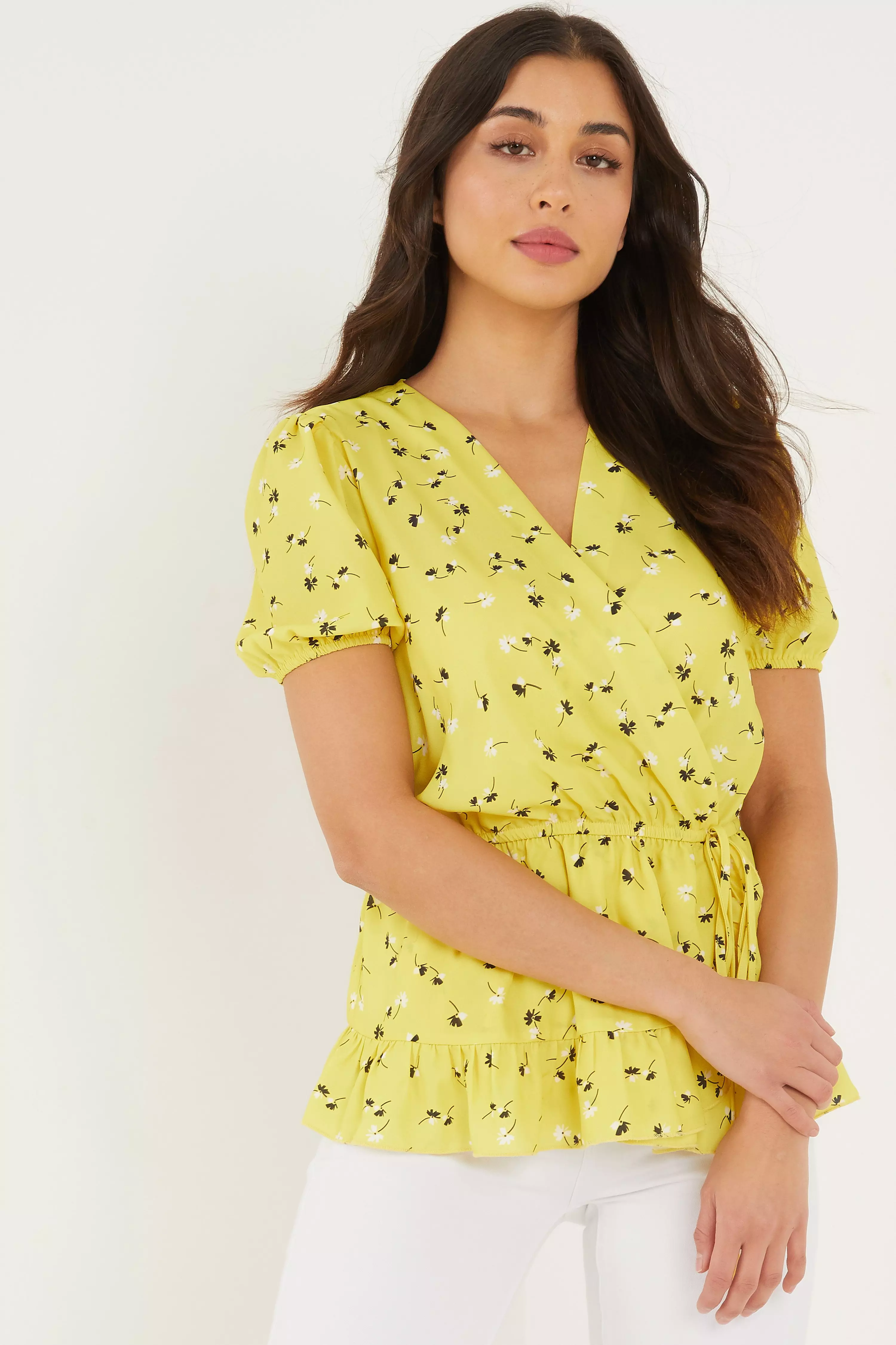Yellow Floral Ditsy Floral Wrap Top New Look Very well made.