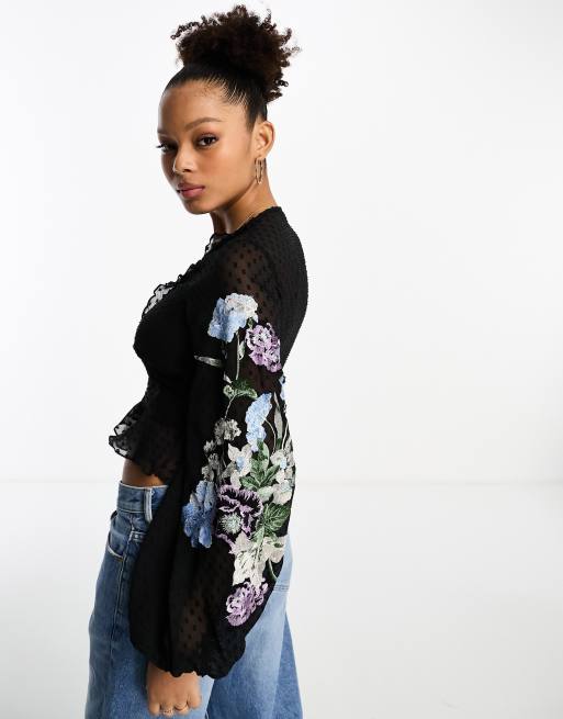 Wardrobe Black Embroidered Sheer Top Very well made.