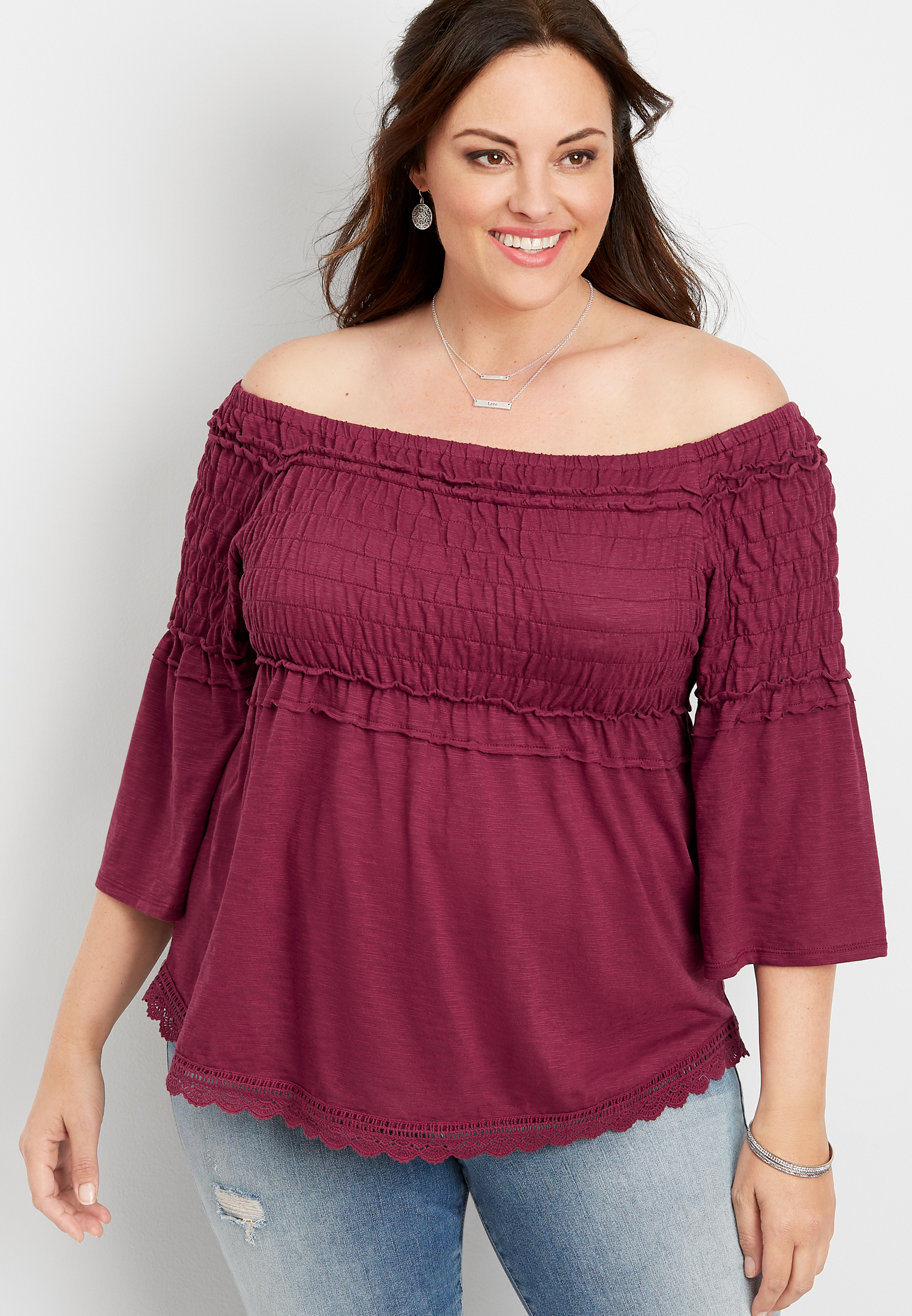 Plus Size Babydoll Chiffon Smocked Off Shoulder Top Torrid Very well made.