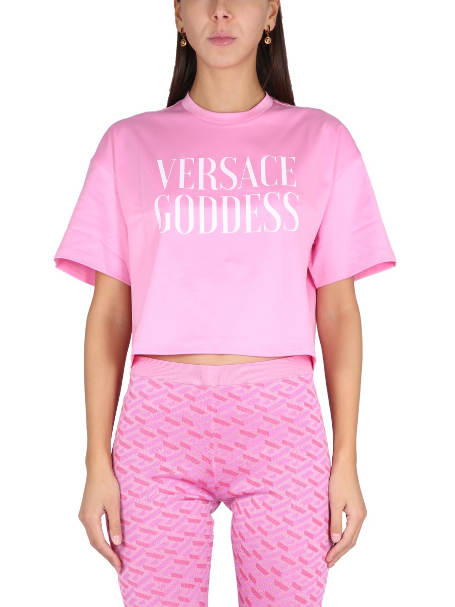VERSACE CROPPED T SHIRT WITH LOGO Eleonora Bonucci Very well made.
