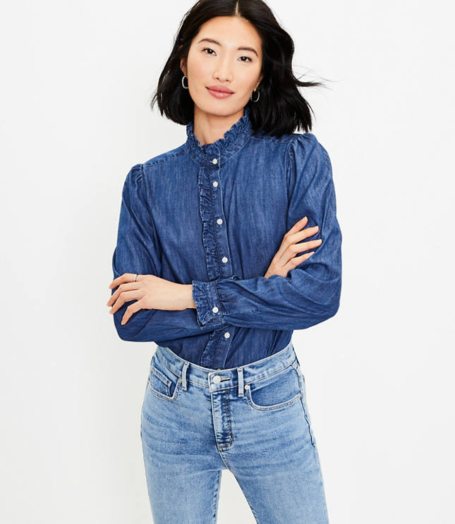 LOFT Petite Chambray Pocket Henley Shirt LOFT Mall of America Very well made.
