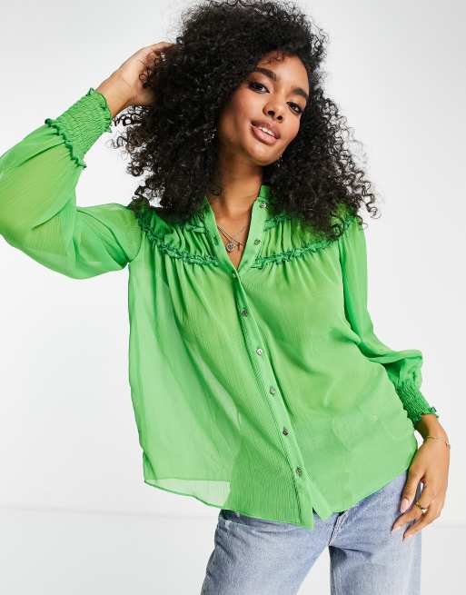 River Island volume sleeve ruffle shirt in bright green ASOS Very well made.