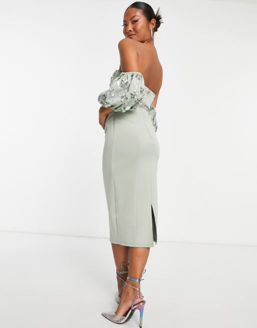 ASOS DESIGN Embroidered Pencil Midi Dress With Cold Shoulder ASOS Very well made.