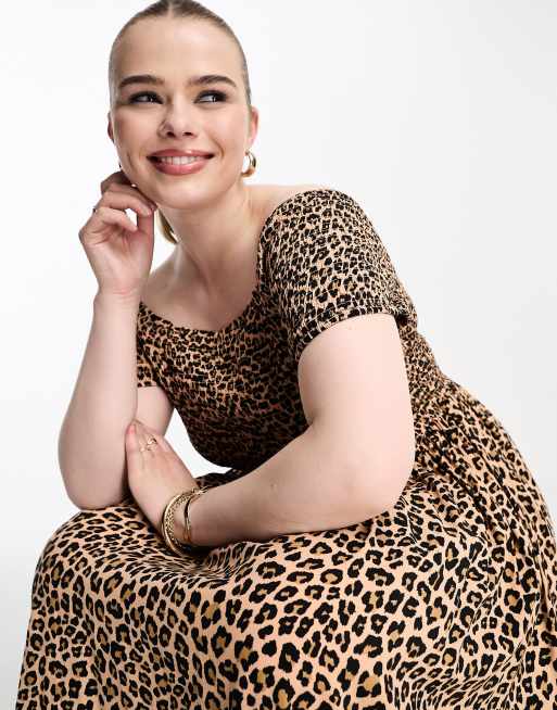 Yours shirred bardot maxi dress in animal print Very well made.