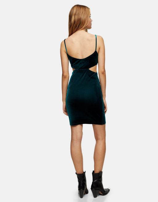 Topshop velvet twist front mini dress in bottle green Very well made.