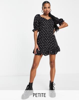 Topshop Petite sweetheart neck dress in heart jacquard print Black Very well made.