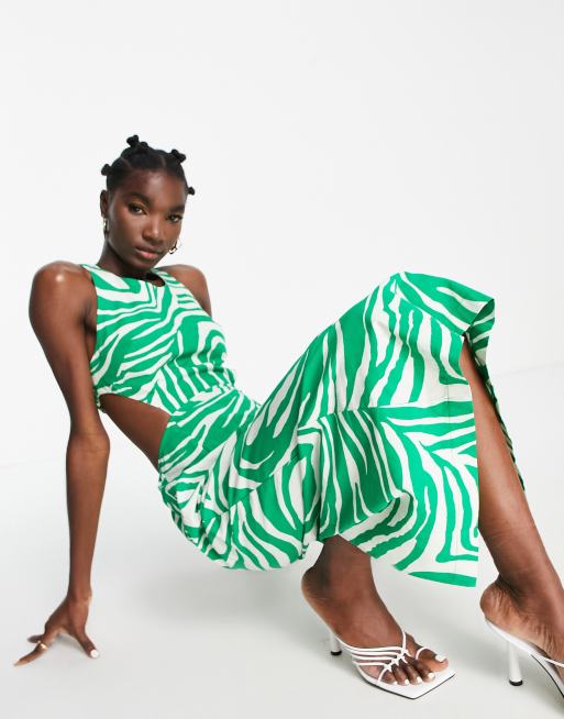 New Look tie back side split midi dress in green zebra print ASOS Very well made.
