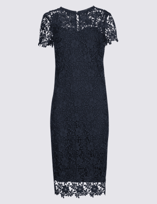 Forever New Petite puff sleeved high neck lace mini shift dress in blue Very well made.