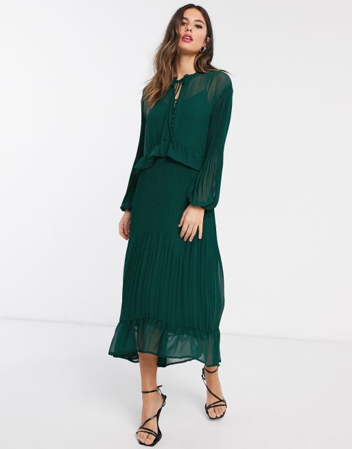 WAREHOUSE Pleated Halter Midi Dress in Aqua Endource Very well made.