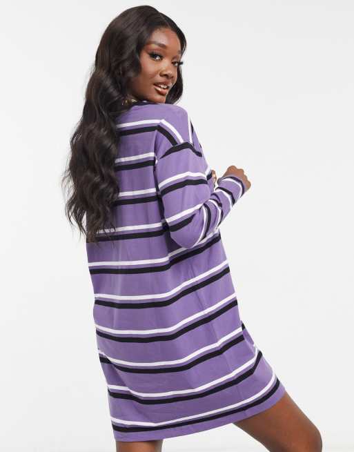 ASOS DESIGN Tall oversized long sleeve t shirt dress in dark purple black and white stripe Very well made.