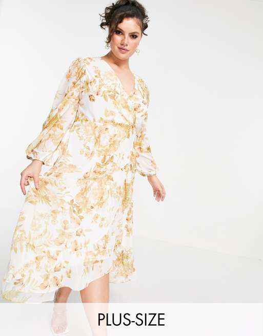 Forever New Curve wrap midi dress with ruffle hem in ivory and Very well made.
