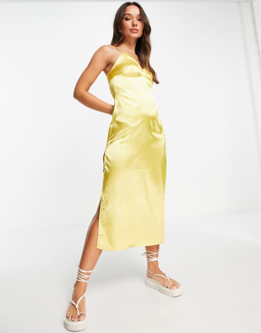 Urban Threads satin cami strap midi slip dress in lemon Very well made.