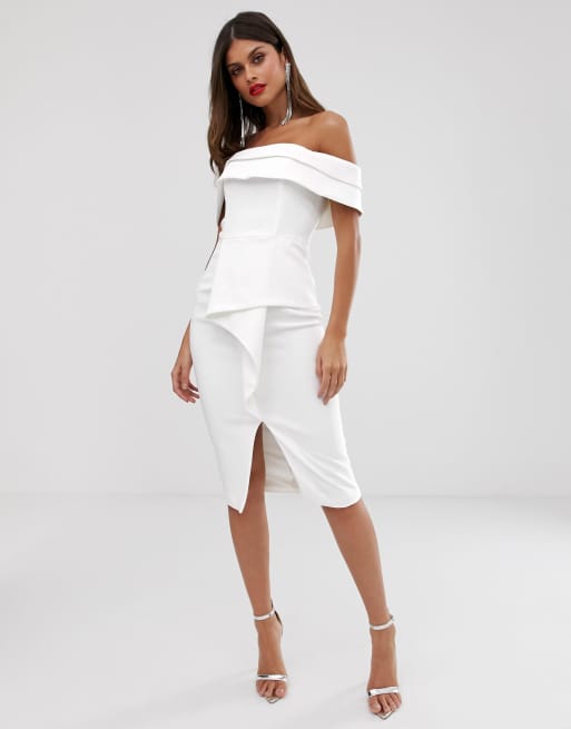 White Bardot Peplum Midi Dress Dresses PrettyLittleThing UAE Very well made.
