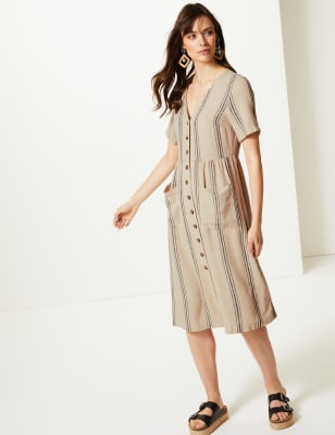 Linen Rich Striped Waisted Midi Dress M S Collection M S Very well made.