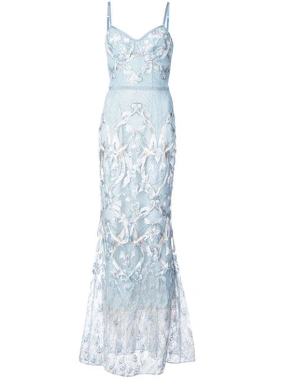 Marchesa Notte Black Sleeveless Embroidered Corset Gown In Blue Very well made.