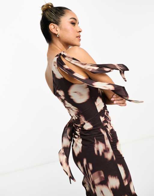 ASOS DESIGN one shoulder waterfall midi dress in smudge print ASOS Very well made.