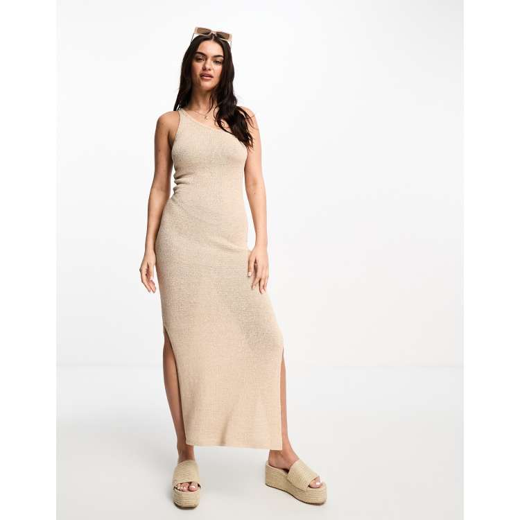 Stradivarius one shoulder crochet knitted maxi dress in natural Very well made.