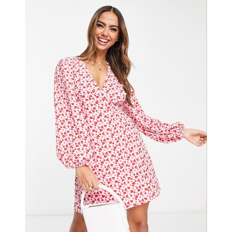 Glamorous wrap mini tea dress in pink ditsy Very well made.