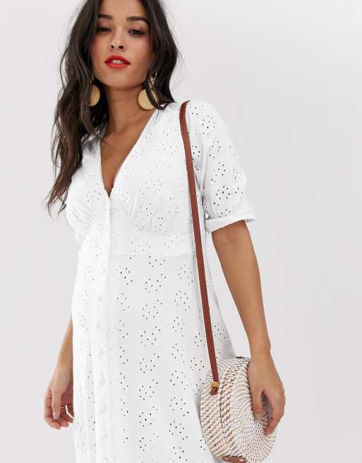 ASOS DESIGN Petite broderie tea maxi dress with puff sleeve in white Very well made.